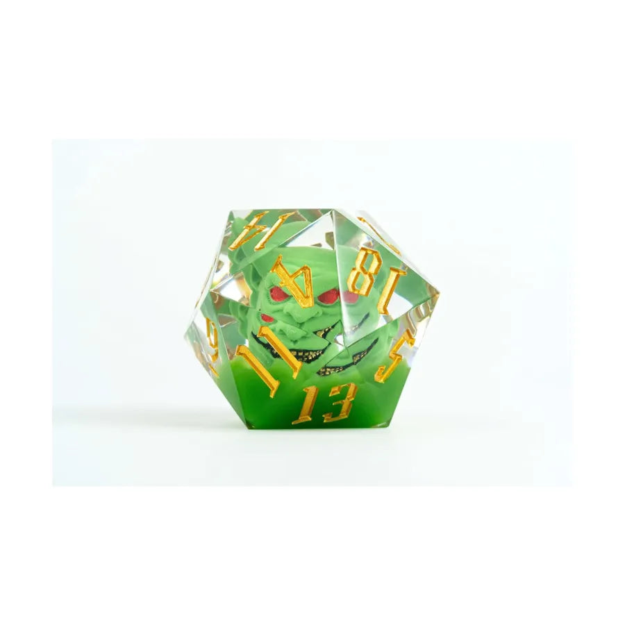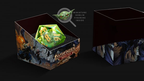 Beautifully crafted. This inclusion dice is infused with a goblin figurine! At 55mm this Mammoth d20 is a huge addition to any game table!
